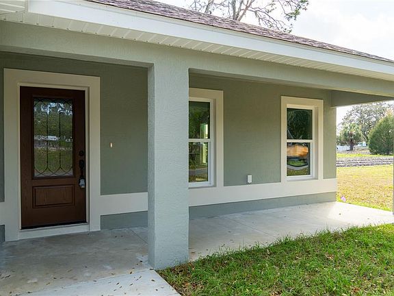 One or more photo(s) has been virtually staged. Under Construction. Discover your dream home just 2 miles from Brownwood Paddock Square, Grand Traverse Shopping Plaza, and everything The Villages has to offer! Located within the city limits of Wildwood, this new construction comes with the convenience of public water and sewer—no need to worry about a well or septic tank. Plus, with no HOA, CDD, or bonds, you can enjoy your home with freedom and peace of mind. From the moment you arrive, you’ll love the charming front porch and the unbeatable location. Step inside and be impressed by the vaulted ceilings and open floor plan, perfectly designed for modern living. The spacious kitchen is a chef’s delight, featuring quartz countertops and ample storage. Throughout the home, you’ll find modern, stylish finishes—and with no carpet, it’s as elegant as it is easy to maintain. The primary bedroom is generously sized and includes a walk-in closet and beautifully designed en-suite bathroom with a walk-in shower. The guest bedrooms are equally spacious, each with a ceiling fan and lights. The second bathroom features a tub with modern tile and sleek finishes. With completion expected by the end of 2025, this home is ready for you to secure before the new year! Don’t miss out—schedule a tour today and make it yours! MLS Disclaimer: Photos are for illustration purposes only. Home is currently under construction, and finishes, features, and layout may vary.