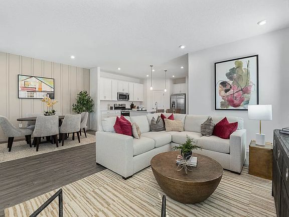 Dining areaWhite kitchen cabinetsKohler fixturesLarge walk-in closetKichler lightingOpen-concept first floorShaw lvp flooring