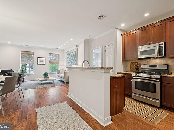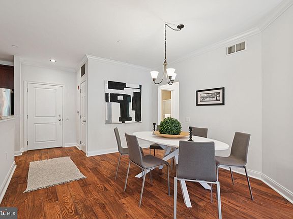 Spacious and beautifully maintained, this two-bedroom, two-bath condominium in Naval Square offers modern living with a highly desirable split floor plan and DEEDED PARKING. Located on the first floor of Strickland Court, Unit #110 is just steps from the building’s entrance—providing unmatched convenience—yet offers a peaceful retreat with the best of city living just outside the gates. Inside, the open-concept layout is designed for both comfort and style. The gourmet kitchen features granite countertops, stainless steel appliances, a full-size pantry, and abundant cherry cabinetry. A large center island with a breakfast bar is ideal for casual meals or morning coffee. Upgraded wide-plank hardwood floors flow seamlessly from the kitchen into the spacious dining area—perfect for entertaining with overhead lighting and room to seat a crowd—and continue into the sunlit living room, where two oversized windows fill the space with natural light. The king-sized primary suite is a true sanctuary, offering a walk-in closet with custom built-ins and a spa-like ensuite bath complete with a double vanity, soaking tub, stall shower, and linen closet. On the opposite side of the home, the second bedroom provides a perfect guest suite, nursery, or home office, and includes its own walk-in closet with easy access to the second full bathroom. Additional features include a dedicated laundry closet with a full-size washer and dryer, and a large private storage unit is also included, located on the third floor. And don’t forget—this home includes DEEDED PARKING! Naval Square residents enjoy a wealth of amenities, including 24-hour gated security, a seasonal outdoor pool, fitness center, yoga/barre studio, and beautifully landscaped grounds with mature trees. The location is unbeatable—just a short walk to Fitler Square, Rittenhouse Square, the Schuylkill River Trail, and the heart of the Graduate Hospital neighborhood. Enjoy local favorites like Ants Pants Café, Sabrina’s, Dock Street, and Rival Bros. Coffee, plus vibrant shopping and dining along South Street and Washington Avenue. Commuting is effortless with nearby grocery options (Giant Heirloom, Sprouts, and the new Aldi), excellent SEPTA transit routes, and quick access to major highways. You're also just steps from CHOP Research, UPenn, HUP, Drexel, and the Center City core. Come see this exceptional home today—city living has never been so comfortable or convenient.