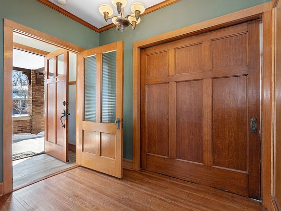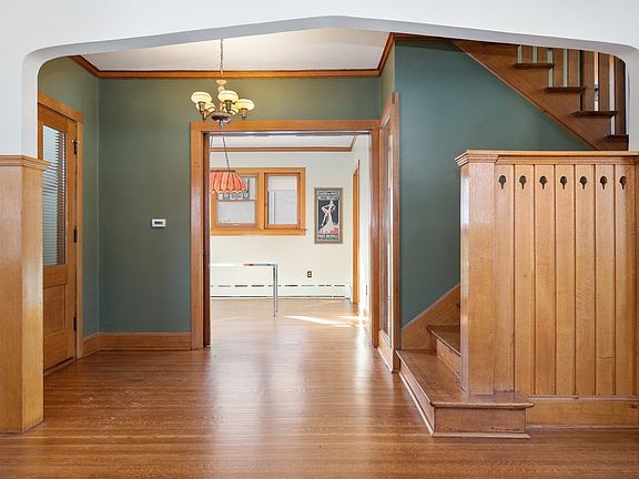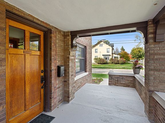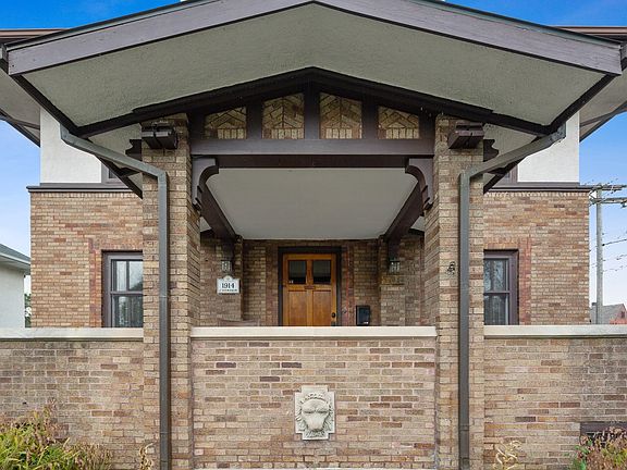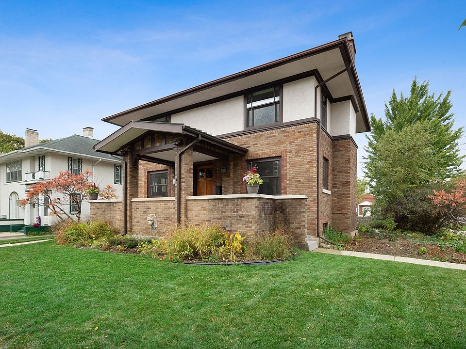 This gorgeous 1914 Arts & Crafts brick historic home in the Elgin National Watch Historic District is absolutely stunning! No detail has been over looked when this home was carefully restored! Solid brick, 3 bedroom, 1 1/2 bath home with a the largest lot on the block is a rare find! Beautiful stained glass throughout the entire home, 9' ceilings throughout, original quarter-sawn oak trim, single 3 panel pocket door to the dining room, wood burning fireplace, and an enclosed back balcony off the upstairs bath is perfect for a private escape! The exterior of the home is gorgeous brick, with an impressive front porch & wide eaves. The kitchen was updated with plenty of cabinet and counter space, with a Silverstone sink, and stainless steel appliances.. Basement has separate zoned heating for a finished family room, large laundry room and lots of storage areas. Outside, the carriage house is now a two-car garage, with 220 electric power. The fenced yard in back is plenty of space for dogs and kids to run and play. House was also featured on the 1998 Elgin Historic House Tour!