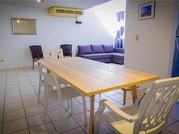 Available now. Comfortable apartment in Paseo del Rio walk up complex for long term rent. Central location in Humacao, next to Bellas Artes and the Jacinto Hernandez sports complex. On a 3rd floor, semi furnished. It consists of 1,315 square feet divided into 3 rooms with large closets and air conditioners, 2 bathrooms, living and dining room with mini split and comfortable kitchen. In addition, it offers a large private terrace of 912 square feet and 2 assigned parking lots. Rent includes fridge, stove, line heater, Hood, washer and dryer. Complex has beautiful recreational areas, gazebo, swimming pool and 24 hour security with access control. Shown by appointment, requires credit check and ability to pay