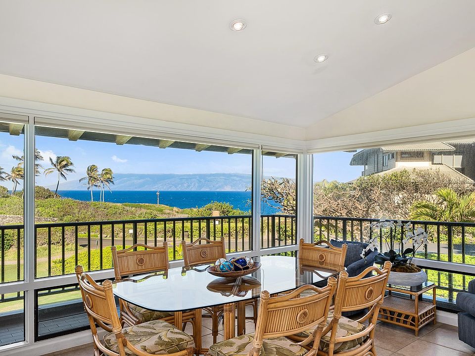 Discover the ultimate luxury villa along the incredible Kapalua coast with this stunning single-level, two-bedroom condominium at the Bay Villas. Upon entering the convenient “no-stairs” entrance, you're welcomed by awe-inspiring views of the Pacific Ocean. Its open floor plan effortlessly merges indoor and outdoor spaces, featuring expansive sliding glass doors that open to three private lanais, perfect for soaking in breathtaking sunsets and soothing ocean breezes. Inside, you'll find exquisite finishes, custom cabinetry, and quartz countertops, along with stainless steel appliances and modern porcelain flooring. The spacious primary suite serves as a serene retreat, complete with its own lanai and a spa-like en-suite bathroom featuring a soaking tub and walk-in shower. Residents of the Bay Villas enjoy access to 3 on-site pools & BBQ areas, tennis courts, direct beach access to Oneloa Bay and this is the closest locations to Kapalua Bay, once rated as the Best Beach in America by Conde Nast. Situated within the renowned Kapalua Resort, indulge in world-class amenities such as 2 championship golf courses, superb tennis and pickleball facilities, delectable dining options, and the luxurious Spa Montage is nearby. Experience island living at its finest in one of Maui's most coveted locations.