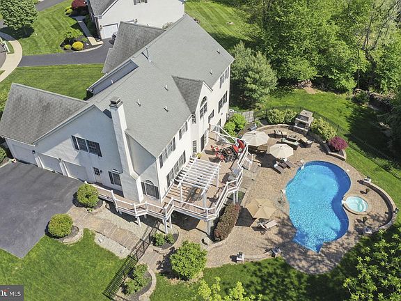 This home has it all! It has been tastefully decorated with enduring class and style. The amount of natural light will surprise and delight. Welcome into the grand 2-story center hall foyer with turned hardwood open staircase and classic lighting. The home office to the right can be closed off for extra quiet time and concentration or as a playroom. Beautiful hardwood floors are found throughout the first floor. This is a great place to call home or share with friends as entertaining is made easy with ample sized rooms with perfect flow. Treat your guests to a formal dinner party in the dining room adorned with wainscoting and crown molding or do something less formal in the gorgeous gourmet chef's kitchen boasting a classically styled oversized center island, plenty of beautiful easy to care for quartz countertops, two full size ovens, gas cooktop, ample seating, recessed and decorative lighting. There is also a marble topped side bar with wine racks, refrigerator and extra cabinets. The family room flows from the kitchen, which makes gatherings inclusive and fun. The 3-car garage leads to a convenient mudroom with cubbies, cabinets, coat hooks and seating. The second floor boasts a beautiful main bedroom suite with vaulted ceilings, sitting area, walk-in closet and a bathroom that will delight and surprise you with dramatic vaulted ceiling, large jetted soaking tub, double sink vanity, stall shower and lots of natural light. There are three additional generously sized bedrooms, two with walk in closets and even one with a bay window with seating. The lower level is finished and offers additional space to enjoy television, games, entertaining and exercise. The wet bar is great for entertaining with high top seating, fridge, sink and refrigerator. The is also a full bathroom on this level. The backyard offers the biggest surprises with a beautiful heated, fully automated salt system inground pool with spillover spa and deck jets. It is surrounded by a spacious paver patio for plenty of seating in the sun or shade. No need to go inside to cook as you will enjoy the outdoor kitchen complete with built-in granite top table that easily seats eight. Cooking is made easy with an outdoor fridge and built in weber gas grill. An oversized outdoor wood fireplace, with an additional seating area, is perfect for cozy nights, fireside chats, melting marshmallows and a nice beverage. You will not be disappointed with this one. Come by and take a look. By appointment only.