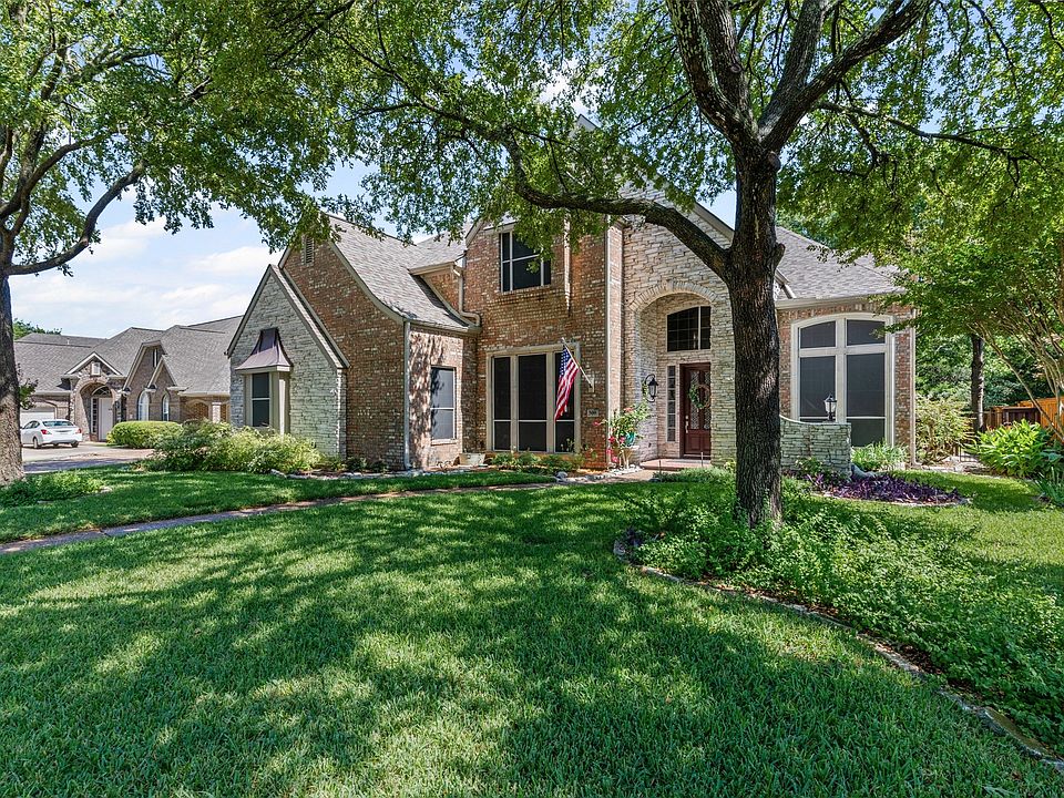 This gorgeous Darling built home sits on a premier wooded creek lot. The flagstone patio with a pergola is a great place to enjoy the view. The large backyard is plenty large enough for a pool. The updated open plan is great for entertaining with 3 living areas. The family room has a gas fireplace and built in shelves and opens to the gourmet kitchen with island and walk in pantry. Upstairs are 4 large bedrooms and tons of storage. The master has a large sitting area and a gorgeous bath with two separate vanities, huge updated shower and two walk in closets. There is a large game room with a pool table and accessories which will convey. The study is downstairs with built in shelf unit. Enjoy all of the Stonebridge Ranch amenities: pool, parks, lakes, ponds, playgrounds, jogging-walking trails, aquatic center, tennis courts. Don't miss this Pecan Crossing beauty.