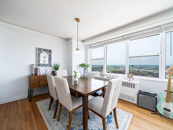 Spacious corner one bedroom with balcony at The Lenox, a full-service building just blocks from Washington Park in Union City. Enjoy panoramic sunset views from the open concept living/dining space in this bright and airy 15th floor residence. The kitchen features white cabinetry, granite countertops, stainless steel appliances, and a spacious pantry for storage. The oversized primary bedroom boasts a large closet and access to your private balcony. Heat/hot water/gas/building amenities are all included in the rent. The Lenox offers 24 hours concierge service, a private building shuttle to the Hoboken PATH, rental parking on-site, a fitness center, resident lounge, laundry room, elevators, and an outdoor grill area. Close to Washington Park, the Congress Street Light Rail, Downtown Union City, Jersey City Heights, and more!