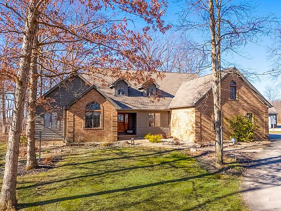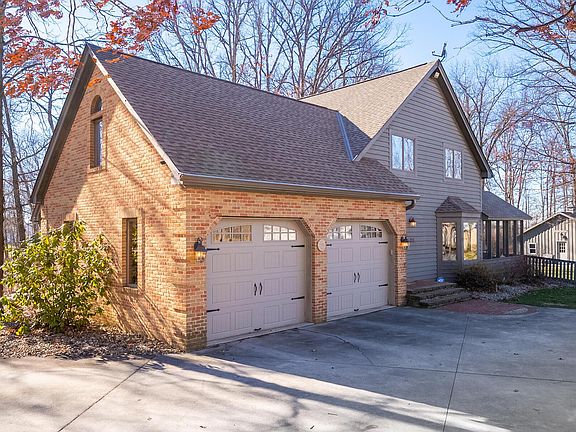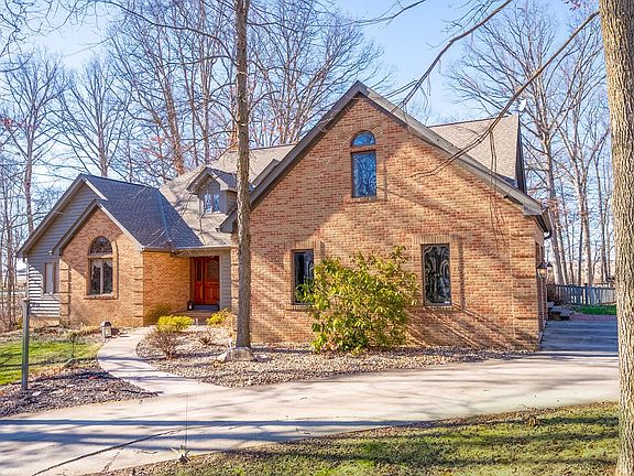 A TRUE OASIS OF SERENITY ON 4+ ACRES! If you love nature's beauty, come home to this 4 BR/3.5 BA custom built cape cod hidden in the woods off of a private winding drive just minutes from downtown Delaware! Featuring 3000+ sq. ft., a 1st flr primary suite, 1st flr laundry, equipped gourmet kitchen w/center island/cooktop and top of the line appliances (Viking/Thermador), a vaulted 1st flr den, formal dining rm, loft, and a dramatic great rm w/WBFP, sky lights and a wall of windows that frame a forest view! Exterior amenities include a screened porch, deck, fenced yard, 2-car attached and 2+ car detached garages, large heated pole building w/rear office/bathroom & doors large enough to accommodate RV's and commercial trucks, and a concrete circular driveway! See attached list of updates.