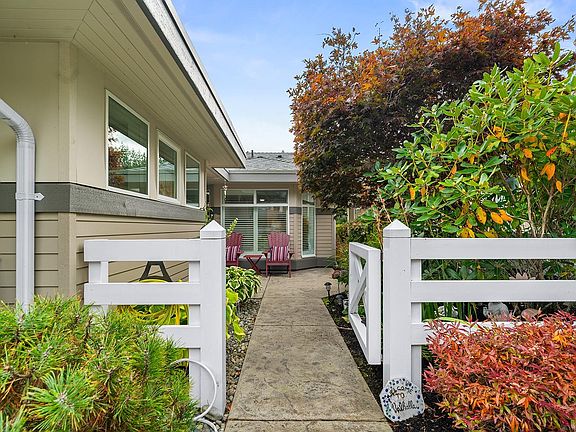 Welcome to 15 500 Corfield St in Creekside at Corfield, one of Parksville’s most sought-after patio home communities. This updated 2 bed, 2 bath home features a bright, open layout with 9 ft ceilings, 3 skylights, and heated floors. The kitchen boasts quartz counters, stainless appliances, upgraded sinks, and freshly painted cabinets. A refreshed fireplace anchors the living area, with newer blinds throughout and shutters in the primary. Comfort upgrades include a heat pump, hot water on demand, newer flooring, and interior paint. The spacious primary suite has a walk-in closet and spa-like ensuite with double sinks and glass shower. Step outside to a private, south-facing patio overlooking a serene pond, waterfall, and gazebo—perfect for relaxing or entertaining. A double garage and attic storage add convenience, while the community offers easy-care living minutes from shopping, beaches, and trails. Move-in ready with a tranquil setting, this home blends comfort and lifestyle