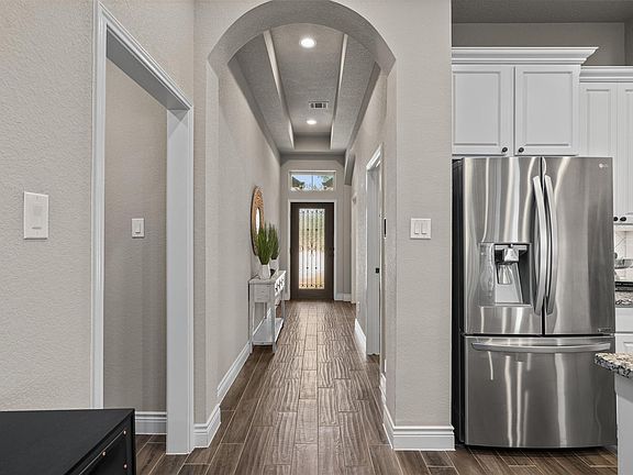Welcome to 500 Cortona Ln in Rancho Sienna! This stunning Perry Homes one-story offers both comfort and style with 3 bedrooms, 2 baths, and a private office with French doors. Enjoy peace and privacy with no neighbors behind. Step inside to find beautiful hardwood tile floors, an open-concept layout, and a bright kitchen featuring stainless steel appliances, granite countertops, an island, and plenty of cabinet space. The living room boasts built-in cabinets and a cozy fireplace—perfect for cooler evenings. The private primary suite is thoughtfully separated from the secondary bedrooms and features a spa-like bath with dual vanities, a soaking tub, and a separate shower. Located within walking distance to the elementary school and part of the highly rated Liberty Hill ISD, this home also offers easy access to HEB, shopping, and dining. *All information provided is deemed reliable but is not guaranteed and should be independently verified by buyers. Square footage, lot size, room dimensions, school zones, taxes, and HOA fees are approximate and subject to change. Buyers are encouraged to conduct their own due diligence, including inspections and verification of all details, prior to closing.*