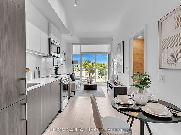 Welcome to Oscar Residences, this 2-bedroom, 2-bathroom suite with 1 parking and 1 locker offers a perfect blend of modern style and comfort in a boutique mid-rise setting. Featuring a bright, open-concept layout, the kitchen showcases sleek cabinetry and stainless steel appliances, flowing seamlessly into the sun-filled living and dining area with walk-out access to a private balcony. The primary bedroom includes a spacious 3-piece en suite for added privacy, while the second bedroom and bathroom provide ample space for family or guests. Nestled in the heart of a vibrant neighborhood with easy access to transit, shops, and local favorites, this beautifully designed home offers the best of Toronto urban living.