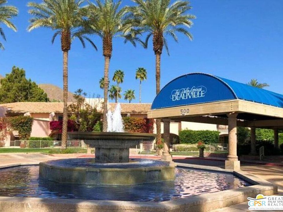 "Deauville" One of Palm Springs Very Best Complex's. Beautiful Lush grounds, Pools & Spa's, Tennis Courts, Underground Parking! & Community Storage rooms. HOA includes Water Trash. Cable and your hot water. Gated complex. Great home or and investment (Seller made over $30,000. first quarter of 2025) Deauville allows 14 day rentals. Comes completely furnished including all Appliances and Washer Dryer. Close to everything in Greater Palm Springs. Across from the Convention Center. This is a great opportunity to own an amazing condo. Come take a look !