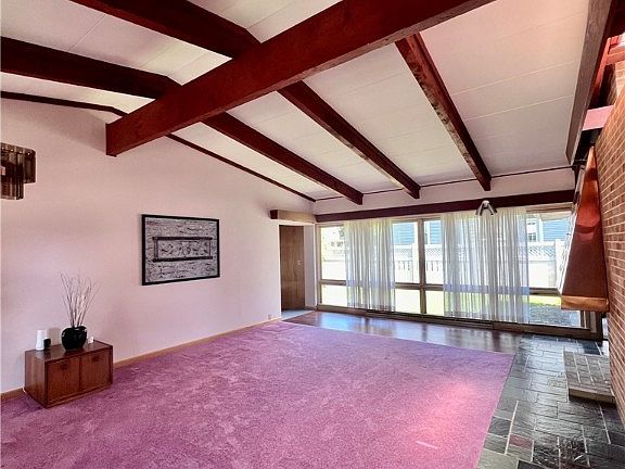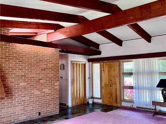 - Description: Beamed Vaulted Ceilings. Could be combined dining & living