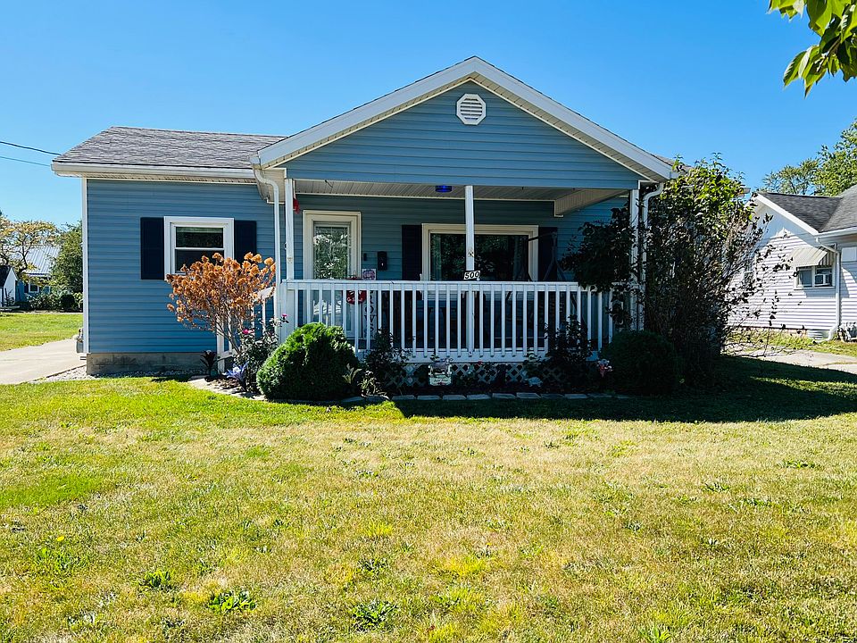 Split bedroom floor planCovered front porchOversized two car garageNewer laminate flooring