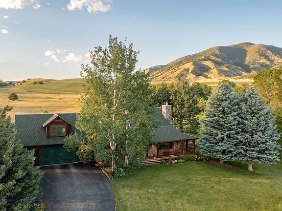 This mountain retreat is nestled in the desirable Springhill/Reese Creek community, just 20 minutes from Bozeman and a quick 15-minute drive from Yellowstone International Airport. Perfectly positioned near major hiking trails in the Bridger Mountains and close to renowned fishing rivers and two ski resorts, it offers tranquility in a secluded setting at the end of a private road. This oasis features jackleg fencing, mature trees, pastures, a spring-fed creek, and breathtaking views of the Bridger Mountains. Set on 20 acres of lush land, this picturesque timber-framed home captures stunning scenery from every angle. Ideal for those seeking an authentic Montana lifestyle, whether as a vacation getaway or permanent residence, it boasts versatile outdoor spaces. A detached garden shed with a doggie door and fenced kennel provides practicality, while an 860+ square foot standalone shop offers ample storage for gear, RVs, and boats, or convert for horse accommodations. The property includes a covered two-sided porch leading to a spacious deck with stunning views. A few steps from the deck a hot tub and fire pit, accompanied by a hand-carved bear bench, create a perfect spot for evening gatherings and sunset views. Perennial gardens and mature trees line the year-round spring-fed creek, attracting abundant wildlife. Inside, the main level features a primary bedroom with generous closet space and a living room centered around a newly restored floor-to-ceiling rustic fieldstone wood fireplace, perfect for cozy snowy nights. The dining room opens onto a large porch, ideal for morning coffee or summer entertaining. The kitchen is equipped with Viking appliances, granite countertops, and a breakfast bar. Adjacent, a laundry/mudroom leads to an attached heated oversized 2-car garage with additional storage and a thermostatically controlled wine closet. Upstairs, a spacious bonus room offers flexibility as an office, bunk room, or family game/TV room. One of the bedrooms is particularly large with ample closet space and a sitting area, ideal for a nanny or in-law suite with its own separate outdoor access. Per zoning, this property allows for two additional buildings to be built. This property provides a unique opportunity to embrace Montana living amidst stunning natural beauty, offering both serenity and practical amenities for outdoor enthusiasts and those seeking a peaceful retreat, complete with water rights.