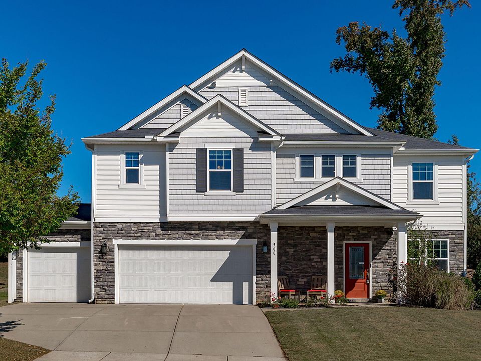 Cozy gas log fireplaceCovered front porchLush landscapingSpacious loft areaGravel seating areaChef inspired kitchenGlass-enclosed step-in shower