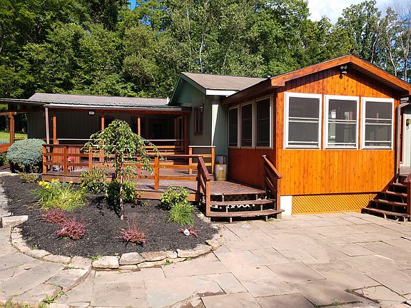 This home is nestled on nearly 6 1/2 acres in a very private and quiet country setting located in the desirable East Lycoming School District. This home has 4 bedrooms with closets, 2 full bathrooms, a large open country kitchen and dining room, living room, 3 season sun room, laundry room, 2 hall closets and an office on the main level. Downstairs there is an entertaining room with a mountainstone base and oak wood topped bar. The bar has a built-in refrigerator, wine rack, shelving and 6 high quality swivelling oak bar stools. The walls in this room are tung and groove oak wood and mountainstone. Along side of the entertaining room is the sportsman room. This room has a built-in enclosed gun cabinet and large Fort Knox gun safe with plenty of space for a pool table or nearly any game tables. Next there is a large family room. Finally there is a utility closet and a storage room.