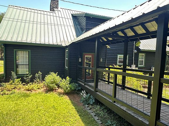 Seize the rare opportunity to own this stunning 4BR, 3BA modern rustic cabin on 7.4 WATERFRONT ACRES on Cheneyhatchee Creek. This property is an outdoor lover's paradise, offering fishing, wildlife watching, & water adventures. The open-concept living area features cathedral ceilings, wood paneling, hardwood flooring, & a stone woodburning fireplace. The recently remodeled gourmet kitchen boasts granite countertops, new natural cabinets, a white tiled backsplash, and top-of-the-line Cafe appliances, including a gas cooktop. The luxurious master suites include a downstairs suite with custom tile showers and an upstairs suite with a spa-like bath, dual vanities, dual rain shower heads, and a private balcony with stunning creek views. Spacious guest bedrooms come with an adjoining bathroom featuring a large stone shower, while a flex room doubles as a laundry room. A spiral staircase leads to a versatile 4th bedroom or office. Additional highlights include a formal dining area with custom bench seating & storage, an upstairs library nook, a mud room leading to a covered walkway to the spacious carport, and a large barn with water and electricity. The RV storage area has ample space and available hookups for water and electricity. Professionally landscaped grounds feature climbing roses, fruit trees, & an irrigation system. New entry fence & paved driveway enhance curb appeal. ** NEW COPPER ROOF/gutters will be installed next wk & a NEWLY installed HVAC system ensures efficiency
