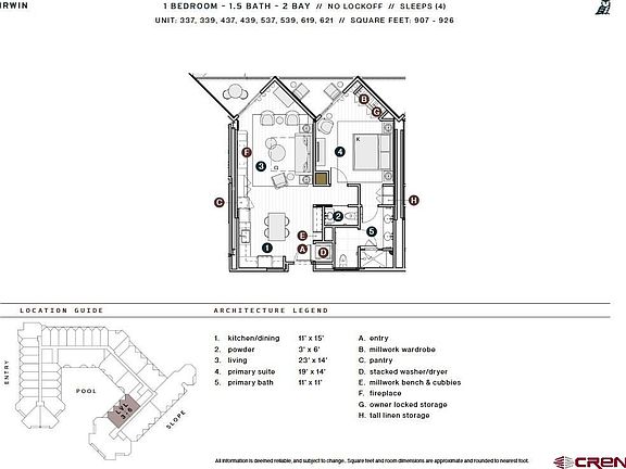 To-be-built Beckwith Residence 437 of the Irwin floor plan spans 907 square feet and features one bedroom, one bathroom, a powder room, and two private balconies that open to pool courtyard views below. This residence is located just steps from the elevator for easy access. Positioned to capture afternoon light, this residence features beautiful balconies overlooking the resort’s hot tub and courtyard, with southwest-facing windows offering dynamic views of the surrounding mountain peaks, including Mt. Emmons and the iconic Red Lady Bowl. Whether you're watching the sun dip below the ridge or enjoying the vibrant energy below, the broad sky exposure and lively setting make this a breathtaking mountain perch. Inside, earthy neutrals, warm wood tones, and layered natural textures create a sense of ease and sophistication, while unexpected design moments reflect the adventurous, creative soul of Crested Butte. A sleek electric fireplace anchors the living space, complemented by wide-plank wood flooring and expansive windows that fill the home with natural light. The gourmet kitchen features stone countertops, high-end appliances, a generous pantry, and a custom millwork entry bench with cubbies— blending beauty and functionality for everyday mountain life. The primary suite is a peaceful retreat with a private balcony, custom wardrobe, and a spa-inspired en-suite bath with Kohler fixtures. A well-appointed powder room, in-unit laundry with stacked washer and dryer, and a secure owner’s storage locker add everyday ease and thoughtful detail. With its open-air balconies, inspired interiors, and ideal poolside location, Residence 437 is your elevated home base in Crested Butte— designed for all-season adventure and soulful alpine living. The Beckwith is the only ski-in, ski-out resort just steps to the lift in Crested Butte's base area. Replete with a four-star boutique hotel, private residences, a mountain & social club as well as world-class amenities including restaurants, luxurious spa, adventure concierge, and ski valet, a multi-phased reimaging of Elevation Hotel & Spa will transform almost every space at the resort. Construction will start this April with expected completion in the Winter 26-27 ski season. Inquire today in the Sales Center on the main floor of Elevation for more information.