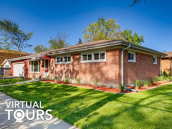 Charming 4 bd / 3 ba ranch style home in Wilmette that boasts an open layout, updated baths, and a finished basement! This corner lot home is surrounded by manicured landscaping, adding great curb appeal. The interior offers natural light and hardwood floors, creating cohesion throughout. Imagine entertaining in the living room, enjoying meals in the adjacent dining room, and cooking in the galley kitchen, equipped with granite countertops, stainless steel appliances, subway tile backsplash, and a breakfast area. When it's time to wind down, there are three bedrooms on the main floor; the primary has an ensuite bath, with marble accents and a spa-like glass enclosed shower, while the others share the hallway bath, featuring a modern white vanity and marble tiled shower/tub. The remaining bedroom and bath are located in the basement, along with a laundry/utility room and recreation room. In the backyard, there's a cement patio for BBQs and a fenced-in lawn for gardening and activities. Other features: 2-car garage; New doors, double pane windows, driveway, carpet, paint, and plumbing. Located near top-rated schools, Westfield Old Orchard, parks, and golf, with easy access to I-94 and Chicago! Buyer should verify all information.