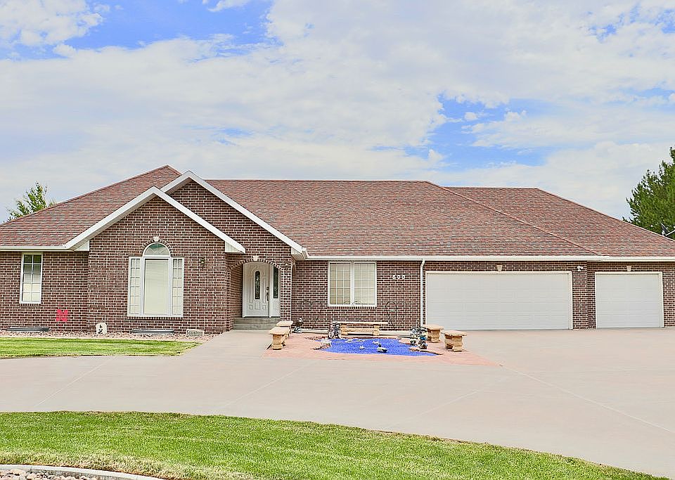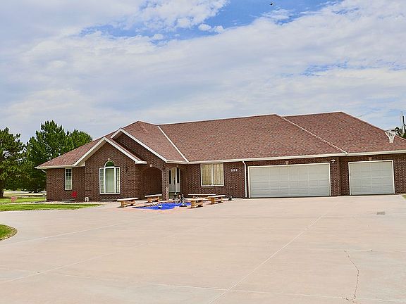HOME FOR SALE BY OWNER: 500 La Hacienda Drive, Colby, Kansas 67701 This beautiful custom built Ranch style all brick home has 6 bedrooms with approximately 4273 finished sq. ft. Built in 1999 this home sits on a 1 acre lot. The open concept has a huge kitchen including an island and adjacent breakfast nook, with beautiful cherry wood custom made cabinets throughout the house, and large Pella windows that provide ample natural lighting. The main level includes the primary suite, along with 2 additional bedrooms, 2 ¾ bathrooms, formal dining room, laundry/mud room. The living room includes a gas fireplace with built-in custom made cabinets on each side, vaulted ceiling, and recessed lighting. Access to the oversized 3 car attached garage is through the mud room. Also, there is a large storeroom (8’ x 19’) at the front of the garage. The downstairs has a movie room, large rec room, wet bar, 3 bedrooms, ¾ bathroom and approximately 320 sq. ft. unfinished storage/utility room with shelving. The back yard has a 14’ x 70’ concrete patio and a beautifully landscaped yard with underground sprinklers. There is an additional 26’ x 40’ detached garage with 10’ x 40’ attic. Also, next to this detached garage is a 22’ x 50’ concrete parking area for boat or RV, as well as space for a small garden. This home is move-in ready!! Private showings are by appointment only. Please call or text 785-462-5551.