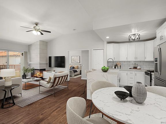 Welcome to a beautifully updated top-floor PENTHOUSE coastal home with vaulted ceiling and plenty of natural light. A short bike ride or walk from the Pacific Ocean and downtown Oceanside, this 3 bedroom, 2 bath home features a freshly remodeled primary bathroom with spa-inspired finishes, an updated kitchen with modern touches, and two private balconies—perfect for morning coffee or unwinding with ocean breezes Enjoy resort-style living with a host of community amenities, including a sparkling pool and spa, multiple playgrounds, and a stylish clubhouse available for private events. Whether you're hosting friends or simply relaxing in the sun, this home offers the perfect balance of comfort, convenience, and coastal charm.