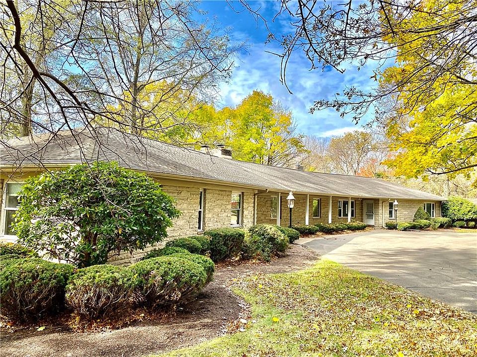 RARE FIND! Exceptional sprawling SOLID STONE ranch that borders Walnut Creek. Expansive living areas. Living room has entire wall of windows overlooking the private back yard and stone gas FP. Hickory kitchen cabinetry, with a huge island accented W/ Venetian plastered walls. Beautiful family room w/ wall of windows,w/Breathtaking views of nature & passing wildlife. Full basement..Gas well on property. Newer roof,windows and electric. HUGE LEVEL BACKYARD! Near entrance to Walnut Creek access.