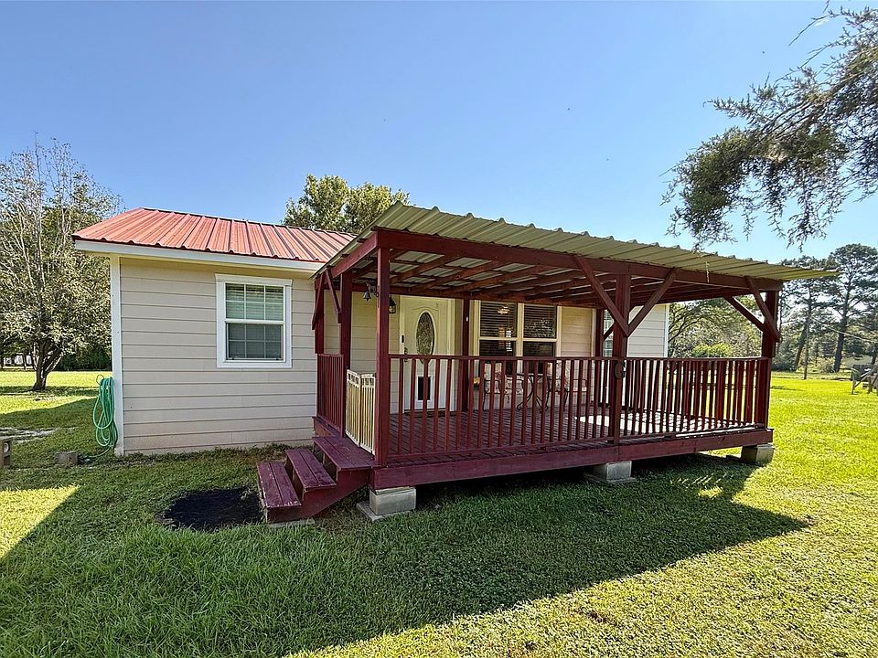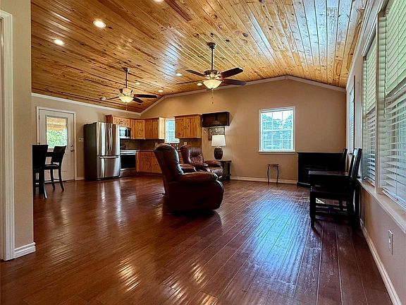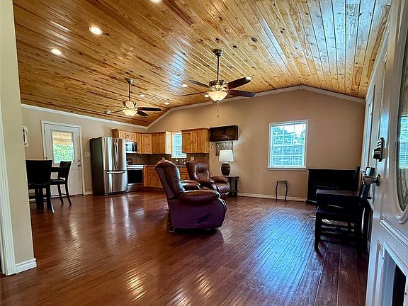 Charming 1-bedroom, 1-bath home located just minutes from town! This move-in ready property sits on nearly an acre of cleared land with no restrictions and road-to-road access. Enjoy relaxing on both the front and back covered porches while taking in the open space around you. Inside, the home offers a very spacious bedroom, upgraded appliances, and a well-kept interior ready for its new owner. Outside, you’ll find a portable building and two covered storage areas—perfect for all your tools, equipment, or hobbies. With plenty of room to spread out, no restrictions, and a prime location close to town, this property offers endless possibilities! Hot tub/Spa is included with purchase of home!
