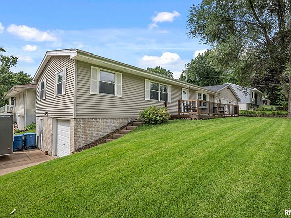 Don’t miss this well-maintained 3-bedroom, 1.5-bath ranch home situated on a spacious corner lot in the charming river town of Le Claire. This property features a rare and functional 3-car garage configuration, including a front-facing 2-car attached garage and an oversized 1-car garage tucked beneath the home with access from the walkout basement perfect for extra parking, a workshop, or storage. Step inside to find a bright and spacious living room that flows into a modern kitchen and dining area. The kitchen is equipped with stylish tile flooring, stainless steel appliances, and convenient pull-out lower cabinet drawers, making both cooking and storage a breeze. The dining area offers direct access to the attached 2-car garage for added convenience. The walkout basement offers even more space with a, laundry area, and multiple storage rooms, along with interior access to the oversized 1-car garage. This lower level holds excellent potential for future finishing whether you're envisioning a home gym, entertainment space, or a private guest suite. Outside, a brand-new wood patio was added in August 2025, providing a perfect place to relax or entertain while overlooking the backyard. Additional recent updates include a new water heater installed in December 2023 and a new roof in 2024, giving you peace of mind for years to come. Schedule your private showing today!
