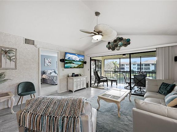 Welcome to your vacation rental home in Pinewoods! This bright, comfortably furnished 2 bedroom, 2 bathroom home features volume ceilings and a screened lanai overlooking the lake. The eat-in kitchen is fully equipped with stainless steel appliances and there is also a pass-through to the dining area. A full-size washer and dryer is inside the unit for your convenience. A sparkling heated pool is just moments away from your door step. Pinewoods enjoys a convenient location close to shopping and all that Naples offers. Just a few minutes away are the beaches and word-class shops and restaurants of Fifth Avenue south. For outdoor enthusiasts, very imaginable land and water sport is nearby. Information contained herein deemed reliable but not guaranteed.
