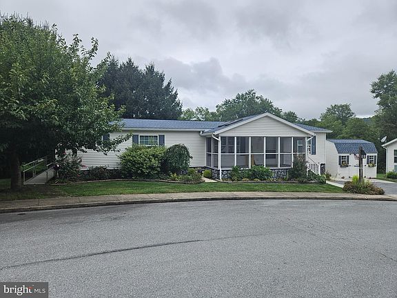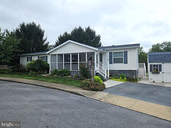 One of a kind home in this 55+ community with a custom build sunroom addition and two ramps for accessibility! Well maintained home with large dining area, breakfast area & a gorgeous sunroom with a great wooded view! Spacious owner's suite with walk-in shower, double vanity and direct access to the laundry room. Enjoy the beautiful back view from the low maintenance deck or sit and enjoy the community in the large screened in front porch. Plenty of storage with a shed & the under sunroom storage area. Don't miss your opportunity to own this great home in a beautiful country community! LOW park rent $380 includes water, sewer & trash!! Quick possession available