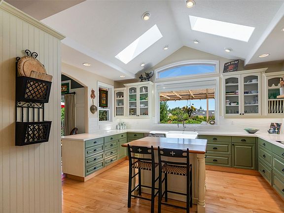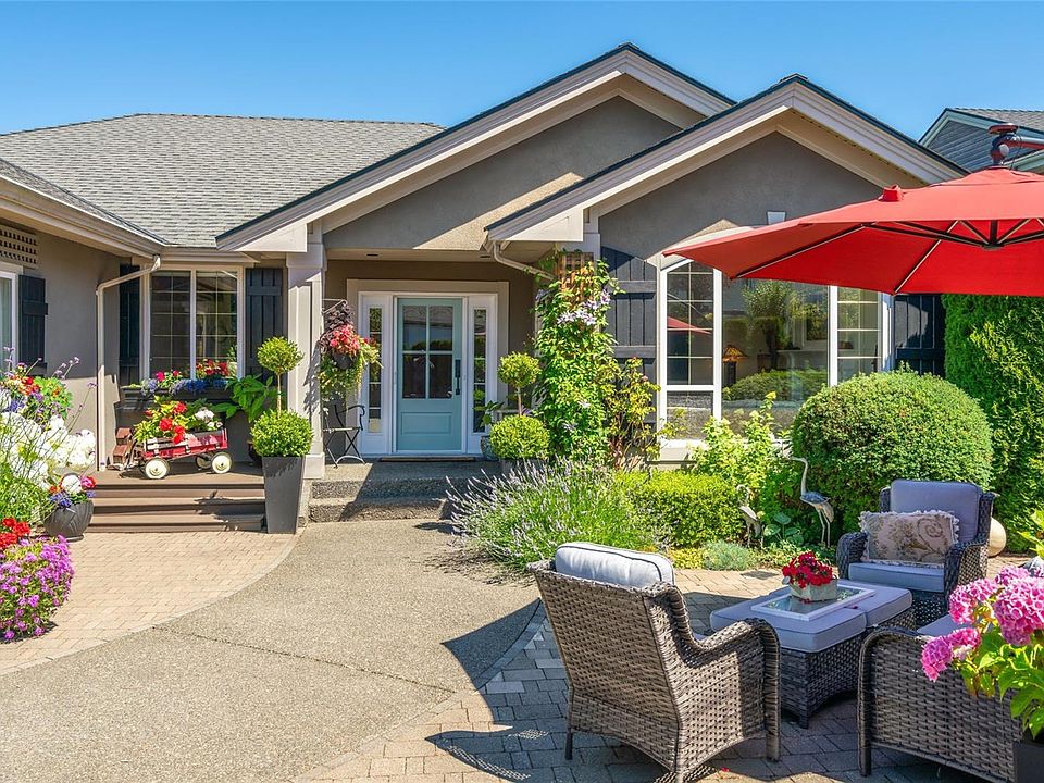 Updated and Charming 'Eaglecrest' Rancher! Tucked in an enclave surrounded by Eaglecrest Golf Course, this spacious 3 Bed+Den Exec Rancher sits on a fully fenced, landscaped .22-acre lot backing onto a greenbelt. Superb updates, a bright open layout, skylights, OS windows, 2 updated Baths, 1700+ sqft of deck/patio space, and a low-maintenance yard with garden beds. Classic details—9' ceilings, arched doorways, crown molding and wainscoting—add timeless style. Just mins from the Village Centre and beach. West-facing courtyard patio with privacy hedging. Inside, find a Formal Living Room with a trayed ceiling, lighted cabinetry, and an elec FP. Maple floors flow into the open Kitchen/Family/Dining Room with a nat gas FP. The Kitchen has skylights, a butcher block island, and stainless appls. Also: Primary Suite with spa ensuite, versatile Den, and Dbl Garage. Massive covered deck and sunny backyard with gardens, berries, and no-maintenance turf. Great extras, visit our website for more