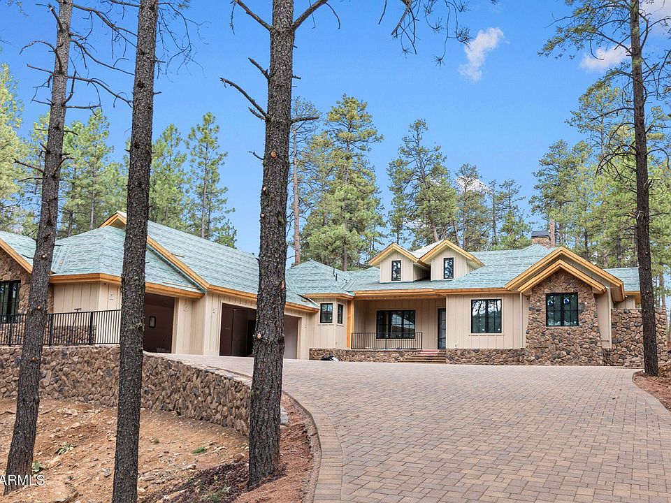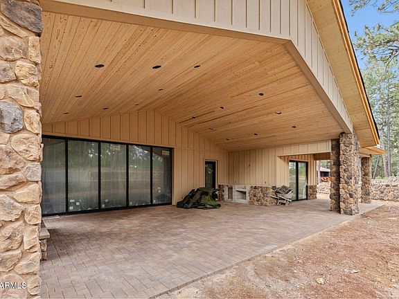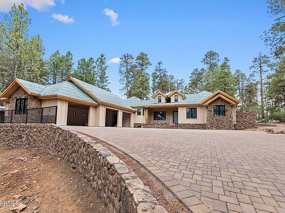 The meticulously designed backyard is terraced with beautiful stone walls and features lush synthetic turf, offering a low-maintenance and visually stunning landscape. Beyond your property, the views of the bordering Sitgreaves National Forest are simply breathtaking.