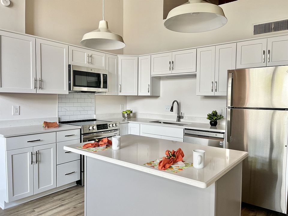 Why go through the hassle and expense of having to renovate? This unit is already done! Introducing a remarkable opportunity to live in the historic and highly desired Bullington Warehouse! Nestled conveniently on the first floor, this meticulously, completely renovated loft offers a delightful blend of modern comforts with true industrial charm. The unit was taken down to bare walls and redone. Renovations include ALL BRAND NEW: HVAC, kitchen cabinets, quartz countertops, kitchen island, stainless appliances, bath vanity with quartz countertop, lighting, toilet, walk in shower with frameless glass doors, top down bottom up custom blind, private bedroom with loft space access, large double closet, luxury vinyl flooring and more! PARKING. Each unit has one assigned space and ample guest surface parking.  Lovely common areas, under shaded trees, dog walk, community grills and within a short walk to Central Park, the warehouse district and downtown. WALKABILITY, PARKING and worry free from having to update your new home!
