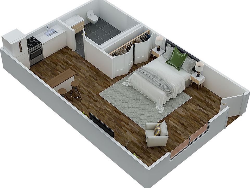 Private entryOpen-concept living spaceSleek vinyl flooringSpacious closet
