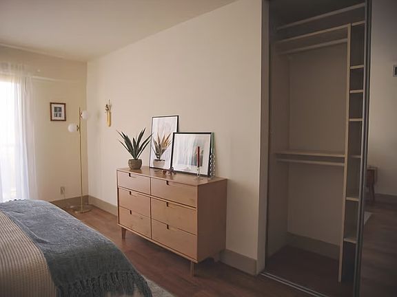 The condo is fully furnished, spacious and very inviting. Your bedroom and ensuite bathroom have been decorated with the intention to create a serene and tranquil environment to unwind after a long shift. The condo has everything you could need including a fitness center, sauna, pool + hot tub, and although you have a washer and dryer in-unit there is also an onsite laundry room with bigger machines if that's ever needed. You'll have access to the fully equipped kitchen, living, and dining area.