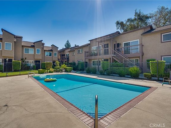 Welcome to this adorable two bedroom condominium nested in the gated community of Pinetree Village. Front balcony overlooks the sparkling pool and club house. Step inside to a spacious living room. The kitchen has a sliding glass door leading out to a second balcony. Washer and dryer hook ups are in the kitchen area as well for added convenience. The master bedroom and living room have new ceiling fans with lights. Located just minutes from the 91 and 55 freeways, Metrolink, shopping and restaurants. Community features include gated entrance, pool, spa, clubhouse and extra laundry area.