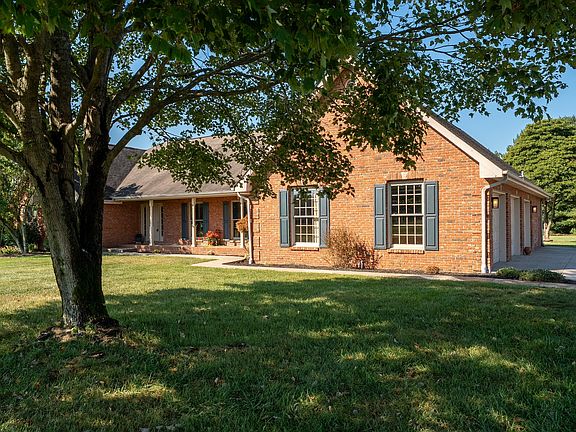 You'll enjoy the openness and exceptional quality in this brick ranch on a 1.96 acre lot! Inviting front porch *Large living room with hardwood flooring & an abundance of natural light *Formal dining room *Open, updated kitchen features granite counters, center island with breakfast bar, S.S. appliances, pantry, backsplash, lots of cabinets & sunny breakfast area *Family room with hardwood flooring & tray ceiling with dentil crown molding *Master bedroom suite has 2 walk-in closets, triple tray ceiling & the updated full bathroom has a large vanity with granite counter & vessel sinks, whirlpool tub & walk-in tile shower *Lower level offer spacious game / rec room, exercise room and 13x36 unfinished area....perfect for workshop, storage or finish for additional living space *Quality features include exposed aggregate driveway & sidewalks, energy efficient "Water Furnace" geothermal HVAC system, 6-panel wood doors, central vac, irrigation system, security system & architectural shingles *Large covered rear porch and open patio to enjoy morning coffee or evening cookouts with friends and family *Close to shopping & restaurants with easy access to Columbus and I-65. No HOA fees.