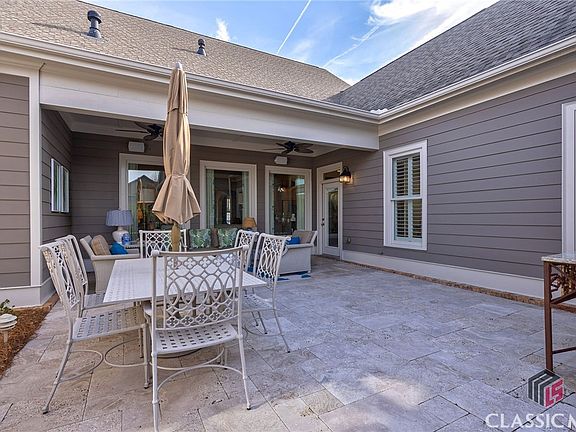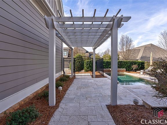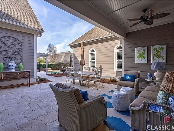Welcome to 500 Navan Lane situated on a beautifully landscaped corner lot in the desirable North Hill neighborhood of The Georgia Club. Exquisite craftsmanship, elegant design elements & a well thought out floor plan merge to create this stunning 5-bedroom 4.5 bath home. From the white picket fence to the inviting wrap around front porch w/Emtech flooring & the beautiful glass double front doors you are immediately drawn to this majestic property. As you enter the home you notice the luxurious details w/ 10 ft ceilings, lovely archways, extensive millwork, updated lighting, hardwood floors & marvelous upgrades throughout creating fantastic spaces to entertain family & friends. Just off the foyer is the dining room w/elegant wainscoting, window treatments & beautiful lighting that can easily seat 12 with access to the serene outdoor side porch. A functional butlers pantry flows from the dining room to the kitchen. In addition, a built-in bar area w/ an oversized sub-zero wine cooler is conveniently located between the living & dining rooms for effortless entertaining. The gorgeous family room w/coffered ceiling & lots of natural light has a painted brick gas fireplace & beautifully designed built-ins w/ hardwood floors, custom window treatments & offers an open concept living design with the elegant kitchen that boasts wonderful painted cabinetry, granite countertops, subway tile backsplash, stainless steel appliances & a walk in pantry. There's a new dishwasher, double ovens, a gas stove, a microwave, a Bosch refrigerator, lots of cabinets & drawers with an island that easily seats 4. The eat in breakfast area has a view of the captivating outdoor living space & is flanked by an inviting keeping room with a gas fireplace, clerestory windows & built in cabinets. A hallway off the keeping room offers an updated powder room & laundry room w/sink as well as a functional landing area w/ bench seating just off the 2.5 car garage w/ epoxy coated floors. A back staircase leads to an oversized bedroom w/a full ensuite bath, built in entertainment unit & lots of closet/storage space. This room could be utilized as a bonus room, an office, game room, exercise room or would make a great in-law or guest suite. Back downstairs are two nice size bedrooms w/ access, one of which is ensuite, to an updated full bath w/ beautiful wallpaper. The primary suite on the main level has a tray ceiling, 2 closets w/ custom closet shelving systems & a generous sized bathroom. The functional primary bath provides 2 vanity spaces w/a dressing table in between, a linen closet, bench seating w/storage, a soaking tub, an oversized tiled shower, updated lighting & a water closet. A front staircase leads to yet another spacious bedroom suite w/a full ensuite updated bathroom. Loads of closet space & climate-controlled storage space as well as walk in attic storage. This masterful floor plan w/ entertaining in mind continues into the marvelous outdoor living space w/ a covered porch, travertine stone patio, a pergola & a 10' x 20' rectangular shaped gunite saltwater pool w/ a waterfall feature. This gorgeous outdoor living space has mature landscaping providing a private oasis to relax & enjoy the beautiful outdoors. The exterior of the home was painted in 2022 & significant upgrades & remodeling have been done throughout this magnificent home. Enjoy a short walk or a quick golf cart ride to enjoy many of the amenities in this gated country club community. Memberships are available to enjoy 27 holes of golf, 4 clay & 2 hard surface tennis courts, an aquatic center w/ 2 pools & cabana service, a fitness center, a clubhouse w/casual & fine dining with a lanai to enjoy amazing sunsets, pickleball courts & a community garden. This home has professional weekly lawn service at $679 per quarter allowing the homeowner more free time to enjoy all that The Georgia Club & the surrounding Athens area has to offer. Welcome home to this spectacular property at 500 Navan Lane!