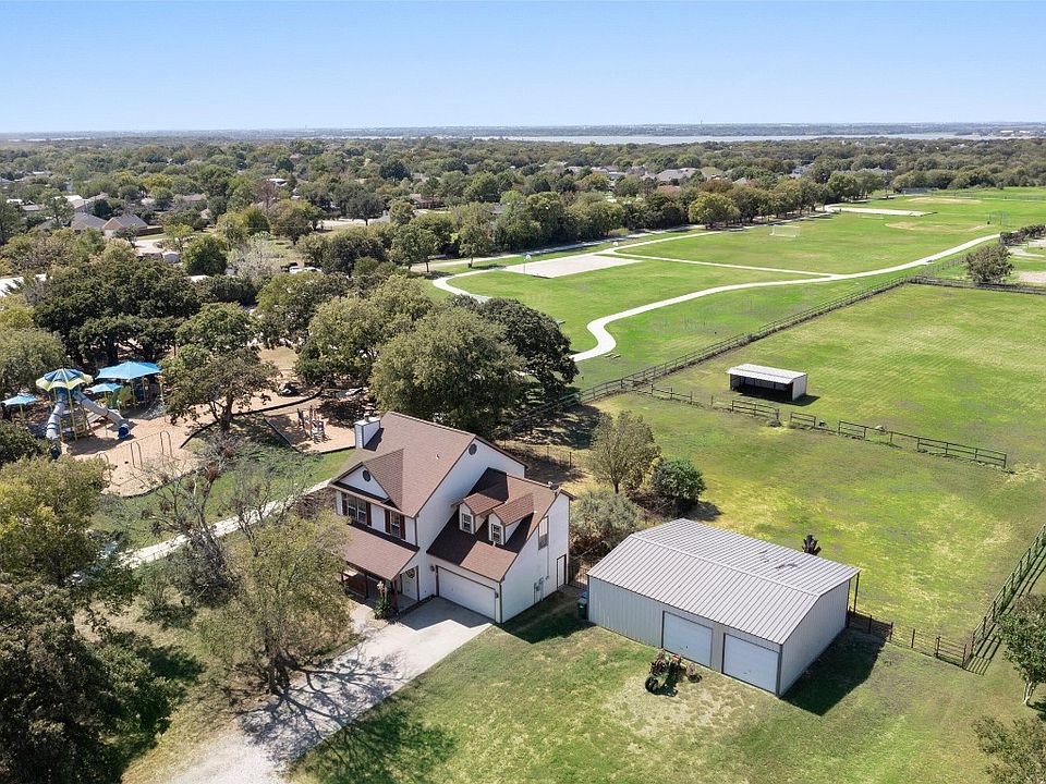 HUGE Price Improvement! Dreaming of country living with all city conveniences? It's not a dream - THIS IS IT! Sitting on two acres, this property offers your family a practical farm style home, BIG barn & is livestock ready. The 3 beds, 2 baths, 2-car garage has a highly functional floor plan. Living area showcases one of a kind fireplace. Kitchen is open, with counter seating PLUS an island & connects to casual dining area with pasture views. Primary BR is spacious, big ensuite with tub and shower. All 3 bedrooms are on upper level. Covered patio leads out to combo shop & barn. The 1200 square ft metal building has double bay doors, 2 nice stalls & concrete floors. The acreage is fenced and cross fenced for livestock, with loafing shed. The location is exceptional, adjoins beautiful park, with shopping and restaurants nearby. This property is family friendly & livestock approved, providing a rare opportunity. Quick commute to Lake Lewisville & airports. Motivated Seller