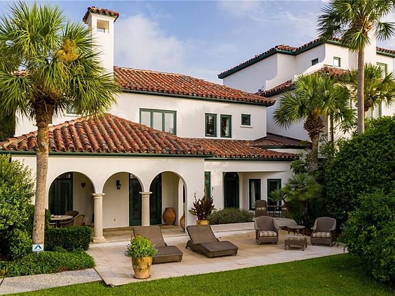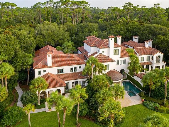 Exquisite oceanfront/beachfront cottage located in Ocean Forest with panoramic waterfront views and your own private beach access. This Mediterranean residence was constructed with the finest quality finishes and materials. They include wrought iron railings and fixtures, pecky cypress beams and bookshelves, plaster walls, travertine and heart pine flooring, limestone pillars and an elevator. This property features 2 guest rooms w/ensuites downstairs with access to the front and back patios, a large formal dining room, eat in kitchen w/top of the line appliances, family room, and a sun-room. The upper level features a master suite w/expansive ocean views, a fireplace and its own sitting room/office and two walk in closets. Additionally there are 2 guest rooms with ensuites. The outdoor living space features a covered terrace and outdoor lounge area w/views of the ocean and a private beach path. This home is spacious and private and perfect for any size family.