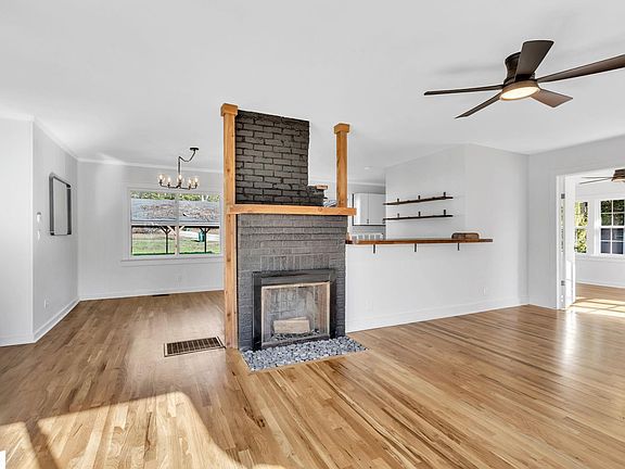 Step into your dream home! This beautifully renovated 3-bedroom, 2-bathroom ranch-style residence offers 1,215 square feet of modern living, thoughtfully designed for comfort and style. Situated on a prime corner lot, this home is a standout with its striking black exterior paint accented with warm wood trim and impeccable curb appeal. Inside, the open floor plan showcases stunning wood floors, new modern light fixtures, and a seamless flow perfect for entertaining. The heart of the home features a stylish kitchen complete with stainless steel appliances, ample counter space, and a view into the living area. Cozy up by the masonry fireplace, enhanced with wood accents that create a warm and inviting ambiance. Enjoy the convenience of one-level living with a layout designed to maximize space and functionality. The bathrooms have been updated with contemporary finishes, complementing the home’s overall aesthetic. Best of all, this property comes with no HOA restrictions, allowing you the freedom to truly make it your own. Don't miss the opportunity to own this turn-key gem in Williamston. Schedule your showing today and make 500 Parker St your new home!