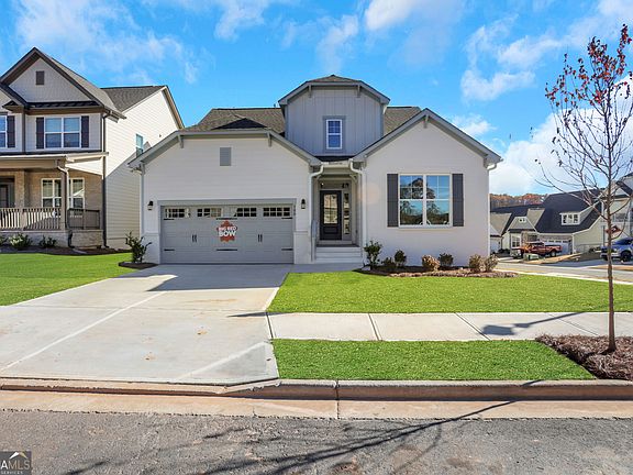 Ready NOW! Located in the beautiful Marble Tree community in Ball Ground, this stunning Wescott floorplan by Eastwood Homes offers the perfect blend of main-level living and flexible space below. Situated on a desirable corner lot with exceptional curb appeal, this bright ranch-style home features a crisp white exterior with painted brick accents and soft gray trim that truly stands out. Inside, you'll love the airy feel created by tons of natural light and a completely carpet-free interior throughout the home. The main level offers three spacious bedrooms and two full baths, including a generous primary suite with a spa-inspired bathroom featuring a large 6-foot shower, dual vanities, and an oversized walk-in closet. A formal dining room welcomes you at the front of the home, while the open-concept living area flows seamlessly into the luxury kitchen, complete with white cabinetry, a warm brown accent island, and plenty of space for gathering and entertaining. The laundry room is thoughtfully designed with built-in cabinets for added storage and convenience. Downstairs, the finished basement expands your living space with an additional bedroom, full bath, and a large rec room-perfect for movie nights, guests, or a home gym-plus an abundance of unfinished space ready for your future vision. Outside, enjoy a spacious backyard with a wide, open layout and plenty of usable green space-ideal for play, pets, gardening, or hosting friends and family. Set in the heart of Ball Ground, this home pairs peaceful small-town charm with everyday convenience. You're just minutes from local shops, dining, and the historic downtown area, with quick access to Northside Hospital Cherokee for added peace of mind. And to make this opportunity even sweeter, buyers can receive $15,000 toward closing costs when using Sabal Mortgage-making this beautiful home even more attainable.