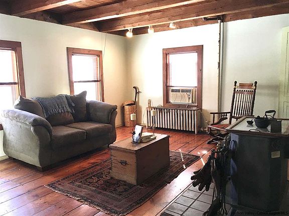 Take a step back in time when you enter the front door of this eyebrow colonial. Original wide board floors and beamed ceilings are the first things you'll notice in the warm and cozy living room and large country kitchen. Original structure was built in 1840 with many period details remaining. In addition to the living room and kitchen, a convenient laundry room, full bath and bright and spacious bedroom round out the main level. The bedroom, which is an addition, boasts a small kitchenette - perfect for guests or even Air BnB potential with easy access to the back door. This room would also make a wonderful formal dining room, if desired. Additional rooms are easily accessed from the large landing on the second level. Venture to the back right bedroom to find a cathedral ceiling, skylites, and access to a private rooftop porch overlooking the rear grounds. Sweet eyebrow windows grace the nice sunny front bedroom with a sizable closet. The up bath boasts warm wood walls and vaulted ceiling with skylite - soak in the tub and you'll never want to come out. And while you're on the second level, don't miss the comfy den/office with it's own charming eyebrow windows. There's even more to offer outside! The two car garage could be made into a great studio with concrete floor and nice structure. Not far from the garage is an enclosed garden area, great for keeping unwanted hungry animals from eating the fruits of your labor. And this property has saved the best for last. To the right of the garden and up a small incline is a private, tranquil pond in a beautiful setting for picnics or just relaxing in a lounge chair. All in all, whether you purchase this home and property or not, you'll definitely never forget it.