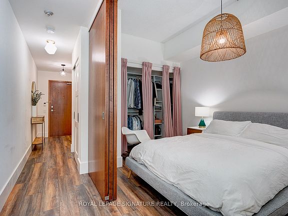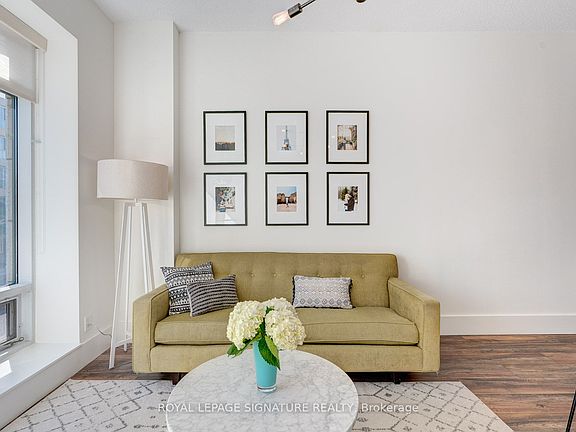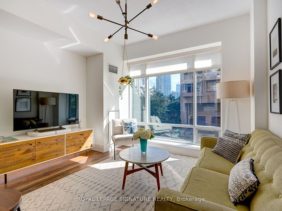 Sophisticated waterfront living in one of the best Toronto addresses - 500 Queens Quay! This spacious one-bedroom one-bathroom condo features a thoughtfully designed layout with anoversized primary bedroom, complete with a massive closet outfitted with custom organizers. The renovated bathroom and open-concept kitchen/living area elevate everyday living, with full-size stainless steel appliances, ample counter space, and a bright, well-proportioned living room ideal for both relaxation and entertaining. Enjoy the comfort and convenience of one parking spot plus a large storage locker conveniently located on the same floor. All this in a highly sought-after building, steps from the lake and overlooking the tranquil Toronto Music Garden. Lastly, this condo has easy access to transit, the financial district, island airport, dining and Toronto's vibrant waterfront.Suite 208E Is the perfect condo for those seeking sophisticated city living with a serene lakeside backdrop.