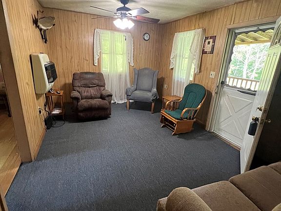 Country living at its best. Cute bungalow completely furnished on almost half of an acre. Large living room and dining room. Easily could be 3 bedrooms but must go thru one room to get to the other. Covered wrap around, level yard, and outbuilding do convey.