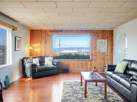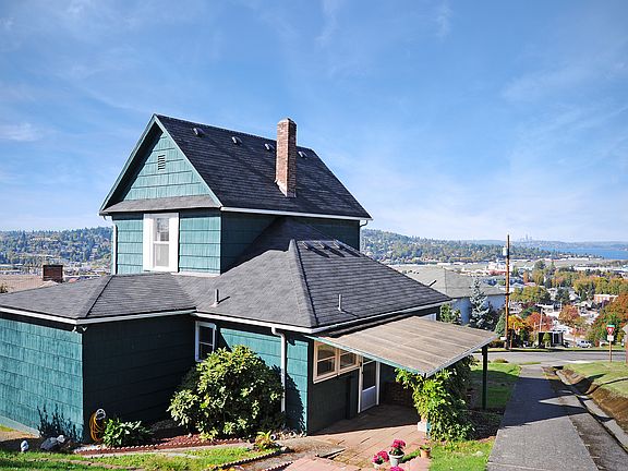 Gorgeous VIEWS of Lake Washington, Seattle skyline, and Olympic Mountains from this beautiful 1902 home on Historical Renton Hill. Spacious living room with high ceilings, hardwood floors and arched entry to dining room. Quaint kitchen with breakfast nook and laundry room. Main floor features master bedroom with huge closet and full bath. Upstairs bedroom with views and oversized 3/4 bath. Basement with tons of storage space.