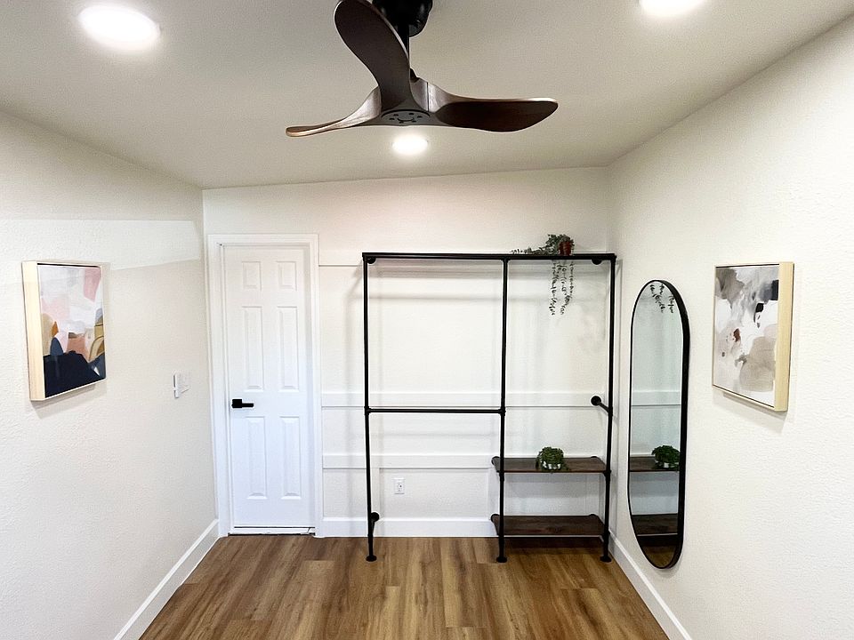 Brightly lit room $700 month + $300 deposit. Remodeled in Modesto. 9ft by 13ft. Month to month lease. Room includes: *New smart coded door locks *new ceiling fan with remote *4 new dimmable LED ceiling lights with nightlight function *touch/swipe dimmer ceiling light switch *extra large clothing rack for large wardrobe *new luxury vinyl flooring *new USB/Type-C power wall outlets *powerful window AC/Heater unit with remote With hi-powered window AC & ceiling fan, this room will not get hot during hi-temp Modesto summers. Home includes free utilities, full kitchen access, hi-speed mesh wifi, new washer/dryer. Good neighborhood near McHenry/Briggsmore. Hoping to find: Roommates who can mesh well & communicate with other roommates, who can be considerate to each other. Prefer someone friendly. No pets, Smoking outside only. Occasional weekly overnight guest is allowed. Month to month. Smoking outside. Street parking.