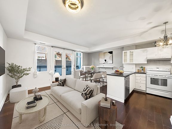 Tucked into the heart of Torontos Fashion District, this two-storey condo feels like a downtown townhouse in the sky. With just five floors in the building, theres no endless waiting for elevators, life here is easy. The main level is open and welcoming, with a modern kitchen featuring stainless steel appliances, granite counters, and an extended island that doubles as the perfect breakfast bar. The living and dining areas flow seamlessly, with a walkout to your private balcony for morning coffee or evening wind-downs. Upstairs, you'll find two bright bedrooms, each offering plenty of room and flexibility-whether for family, guests, or a quiet home office. The primary bedroom comfortably fits a king-sized bed and still leaves space to make it your own. A stylish four-piece bathroom completes the upper level. Cityscape Terrace is a well-loved, low-rise community that puts you within steps of everything, St. Andrews Park, Waterworks Food Hall, the Ace Hotel, and the brand new 57,000 sqft YMCA. Transit, King West, and the Financial District are all just a short walk away. With nearly 1,000 square feet of thoughtfully designed living space, Unit 331 offers a rare balance: the vibrancy of downtown living paired with the comfort of a true home. Select images have been enhanced with virtual staging.