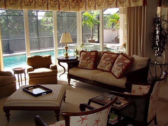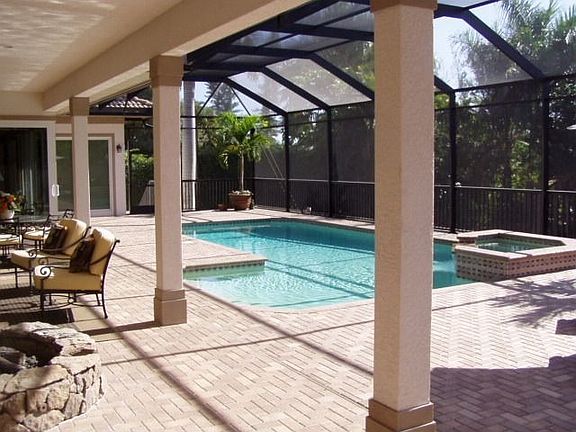 NEW REDUCED PRICE! This is a wonderful newer home on a large corner lot (130 x 160) on one the most attractive streets in the Moorings! There are many special appointments throughout, including crown molding, beautiful decor & window treatments, wet bar w/ wine refrigerator, granite counters, incredble kitchen and much more! The attractive brick paver lanai and pool provides additional outdoor living & entertaining space....even a fire pit for cool Fl. evenings! One of the prettiest streets in the Moorings!