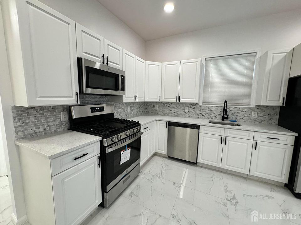 Unpack and Move right into this 4-bedroom / 3-bath home in Newark, New Jersey. The first floor offers Two Bedrooms and a Full Bathroom on the Main Level, ideal for those not desiring steps. Modern open layout Living Room with radiant walnut luxury vinyl flooring flowing seamlessly throughout the entire home. Oversized Kitchen with Quartz countertops, Sleek shaker cabinetry, boasts a bright and airy feel with elegant marble flooring, recessed lighting and All Stainless-steel appliances. This kitchen is a true treat for anyone who enjoys cooking or entertaining guests. The second floor has Two Primary bedrooms, each with their own Full sized En suite bathrooms. 4th Bedroom offers a private walkout balcony/terrace and an amazing ceiling skylight. This home has all that you need for comfort and convenience. Expansive landscaped backyard space, newly installed oak fencing offers both privacy and durability for those who want to enjoy outdoor entertaining and fun. Fully finished basement, great for use as an additional space for family room, workshop or office. The Utility Closet and Laundry Area offer added convenience to this amazing home. This home was fully renovated in 2024 and offers over 1,500 sq. ft. of living space plus a full finished basement. This is an ideal option for commuters who work in Downtown Newark or New York City. With close proximity to major highways like the GS Parkway, NJ Turnpike, and I-78. Just minutes from Newark Airport and Newark Penn Station. Motivated Seller