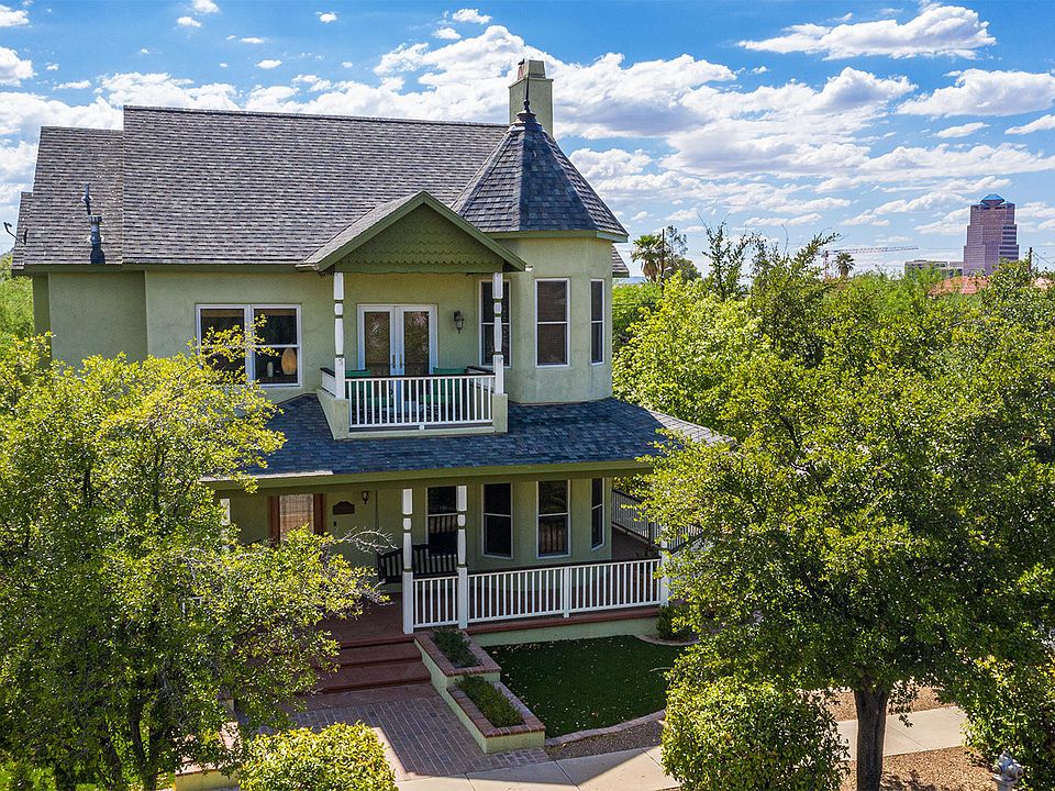 * Located on a corner lot in Historic Armory Park. Enjoy walking to all things downtown. Built in 2005 w/meticulous attention to detail. History & modern convenience meld together in stunning custom home. Beautiful great room floorplan, spacious kitchen, new quartz counter-tops. Island, breakfast bar & access to wrap-around porch. Real 3/4'' wood floors & wood case Anderson windows. 2 wood-burning/gas fireplaces, high ceilings, French doors & lots of light. 3BR's + small office/loft off master w/built-in bookcase. Perfect retreat w/mountain & city views, beautiful fireplace, sitting area, private balcony, bath w/claw-foot tub & sep shower. Guest room w/private bath. Magical, private, hidden yard, built-in BBQ, fountain, mature trees & low care turf. Plus hard to find 2 car garage!